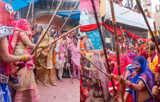 During Dhinga Ganwar, women take up lathis (sticks) and roam the streets in groups, sometimes dressed as gods, maharajas, Bollywood stars, or even cricketers.