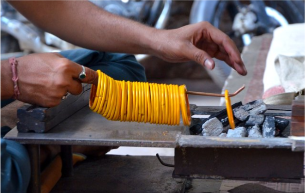 To make it durable, artisans mix sok powder (natural glue) and berja (plant gum). The hot, pliable mixture is rolled into flexible rods and shaped into circles using wooden tools, each ring measured carefully by touch and instinct, not machines.